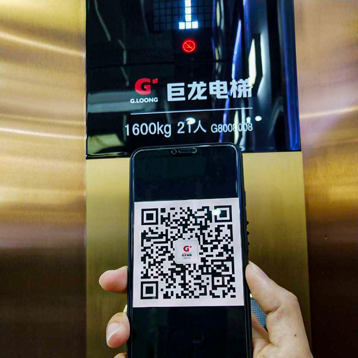 乘客手機自動生成乘梯二維碼,電梯上的掃描設備掃描手機二維碼即可自動登記目的樓層